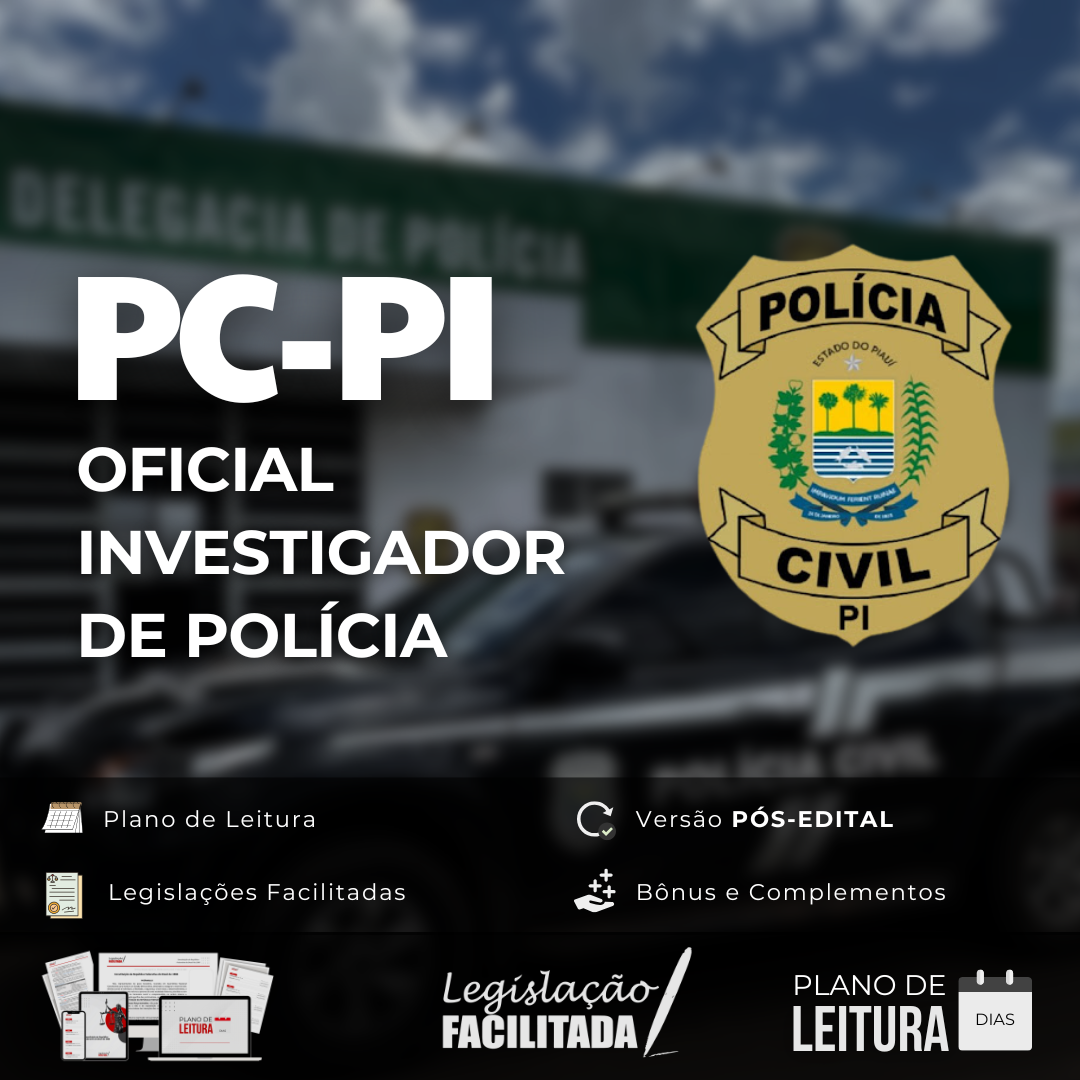 Apresentamos a você o nosso mais recente material preparatório em PÓS-EDITAL para o concurso da Polícia Civil do Piauí – Oficial Investigador de Polícia. Esta nova edição foi completamente atualizada, seguindo orientações do edital e levando em consideração as recentes mudanças legislativas.
